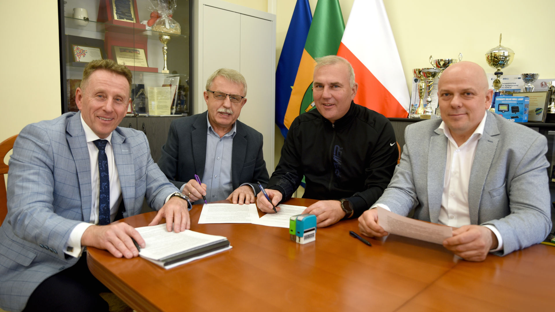 W obecności Starosty Tadeusza Klamy i Wicestarosty Karola Pieloszczyka, dyrektor Zespołu Szkół Technicznych w Kolnie Eugeniusz Gromadzki podpisał umowę z wykonawcą na realizację inwestycji polegającej na modernizacji wejścia oraz zadaszenia do Powiatowej Biblioteki Publicznej, mieszczącej się w Zespole Szkół Technicznych w Kolnie. Przedsięwzięcie ma na celu poprawę funkcjonalności, estetyki oraz dostępności obiektu dla wszystkich użytkowników.