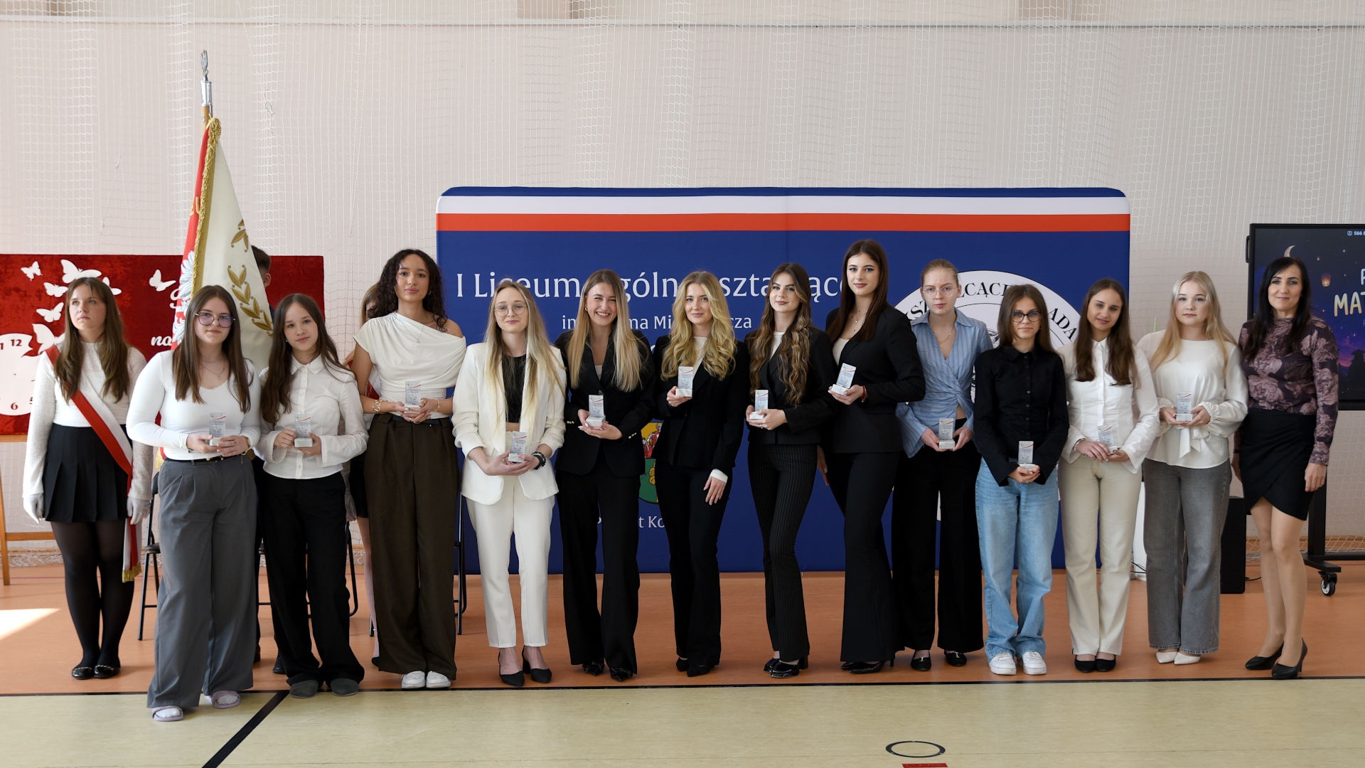 Podczas uroczystej akademii wręczono liczne wyróżnienia dla uczniów, którzy w sposób szczególny zapisali się w historii swoich szkół. Doceniono nie tylko wysokie wyniki w nauce i wzorowe zachowanie, ale także zaangażowanie społeczne i sportowe. Szczególne wyróżnienia przyznano także za udział w konkursach historycznych na szczeblu ogólnopolskim. Za osiągnięcia sportowe, w tym reprezentowanie szkoły w I lidze futsalu, wręczono pamiątkowe koszulki. Doceniono również działalność wolontariuszy działających w szkolnych klubach wolontariatu – otrzymali oni upominki jako wyraz uznania za swoje zaangażowanie i bezinteresowną pomoc.
