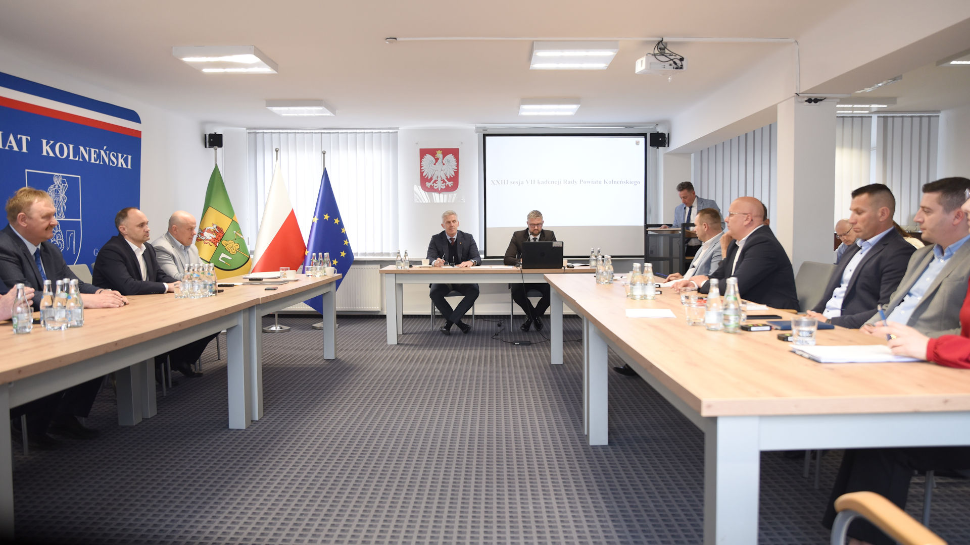 27 kwietnia 2026 r. w sali konferencyjnej Starostwa Powiatowego w Kolnie odbyły się obrady XXIII sesji Rady Powiatu. Radni skupili się przede wszystkim na inwestycjach infrastrukturalnych oraz analizie systemu pomocy społecznej w regionie.